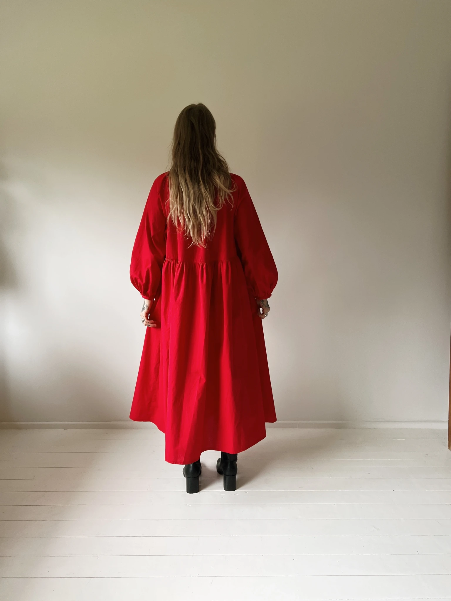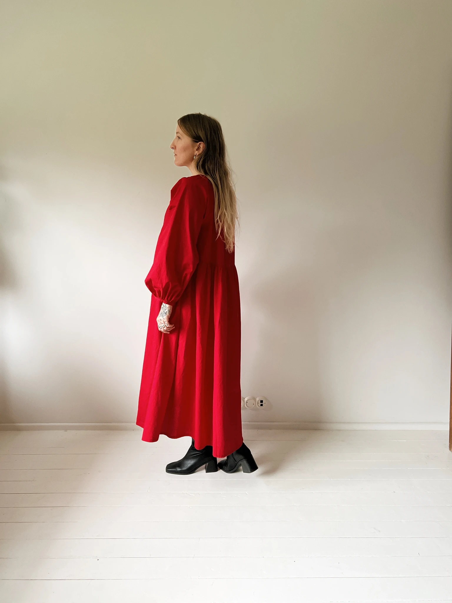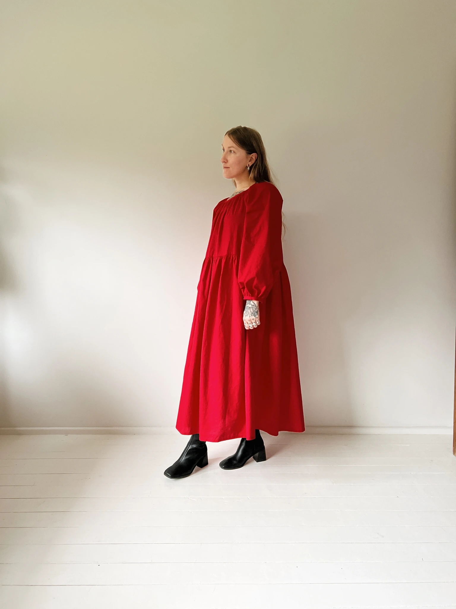 RUBY is a comfy raglan sleeve dress. The skirt is attached at the waist and is gathered for extra room and volume for the hip.