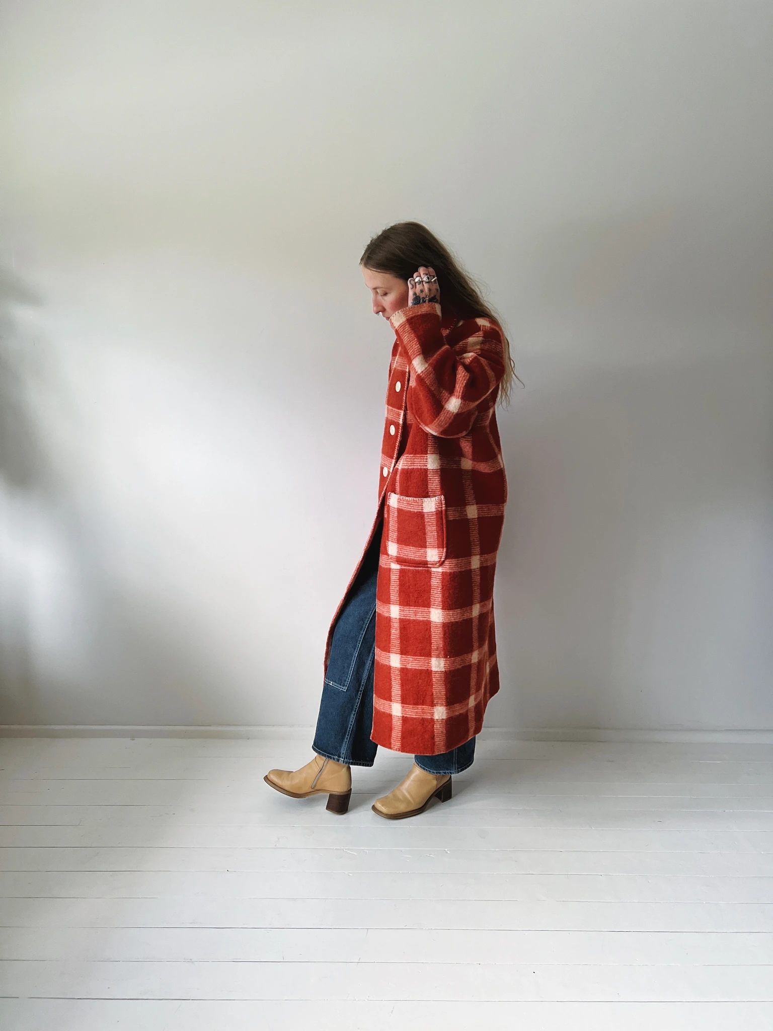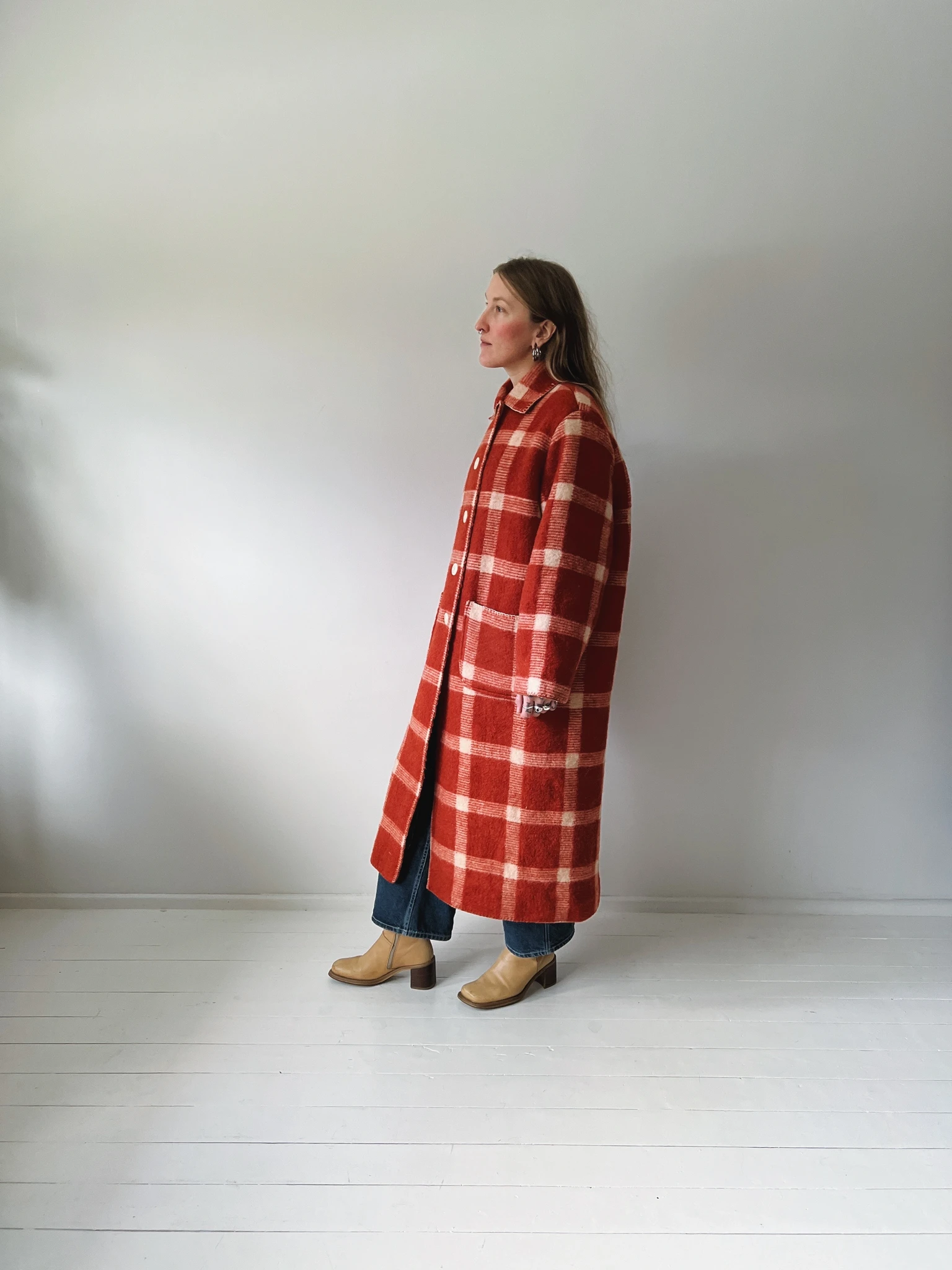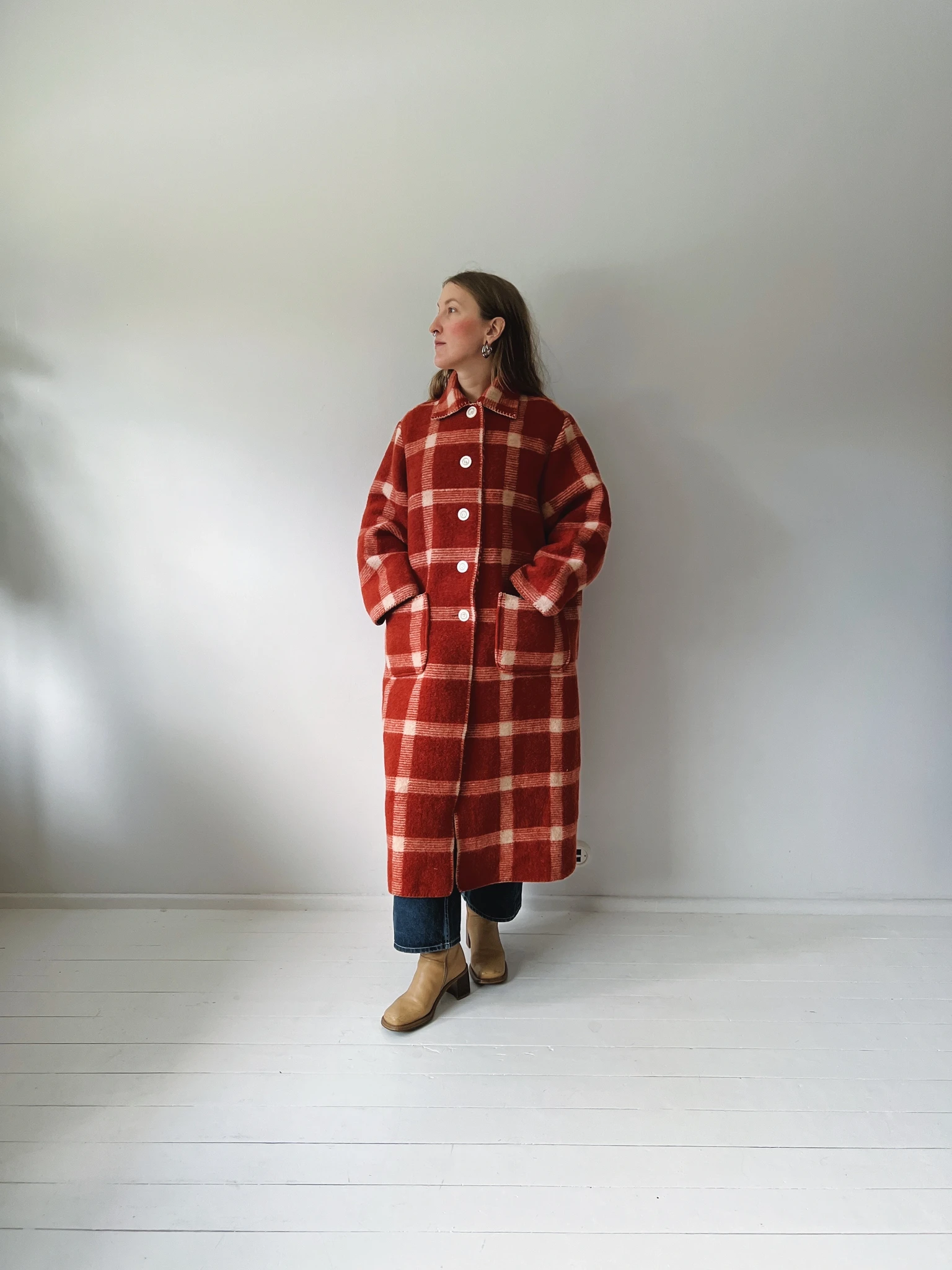 PEGGY is an unlined coat that's made from a vintage blanket and is ideal to wear in the chillier months. We have kept the original hem and finish were possible and handstitched the rest with the utmost care.