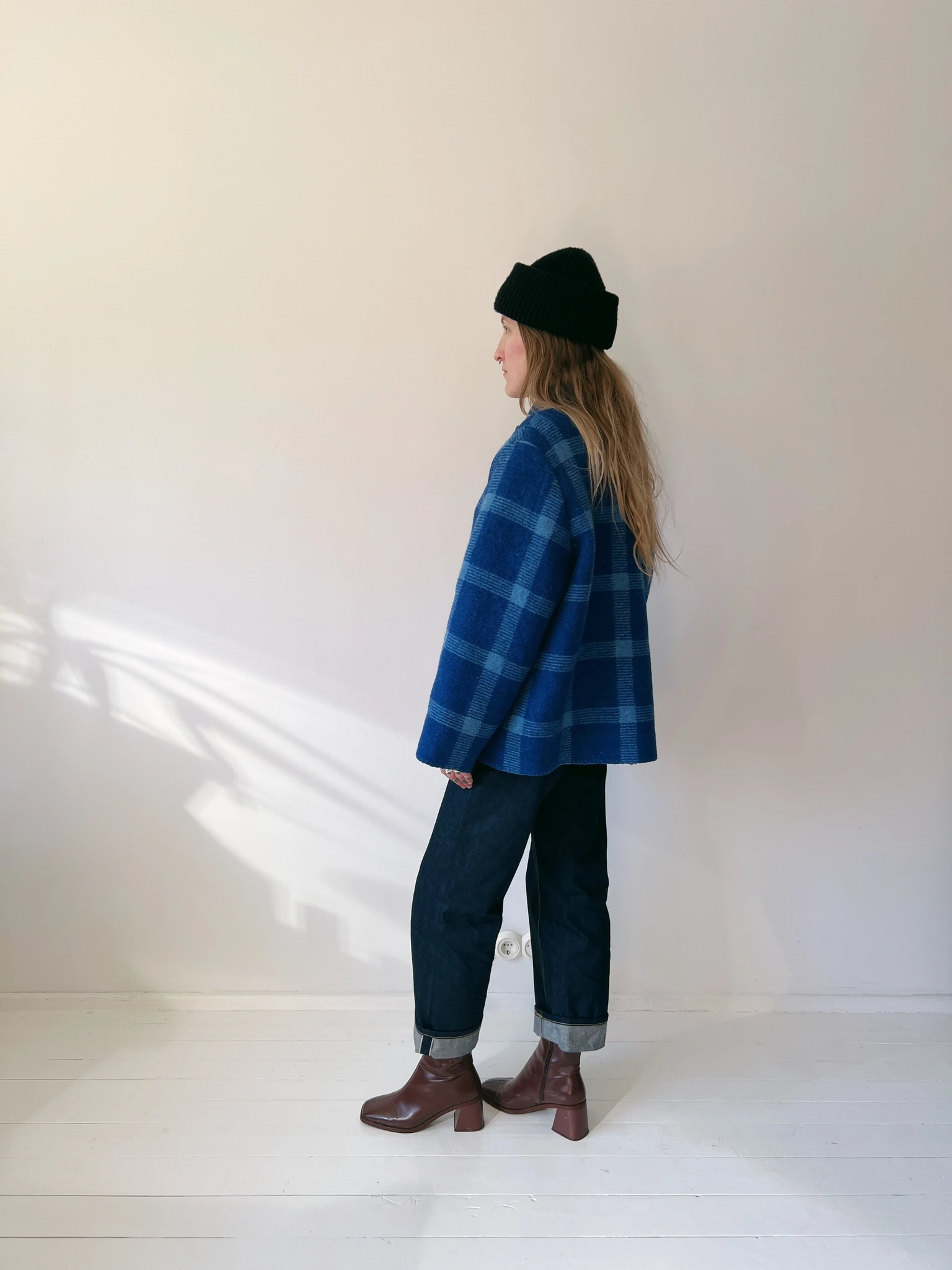 PEGGY blanket jacket (blue grid)