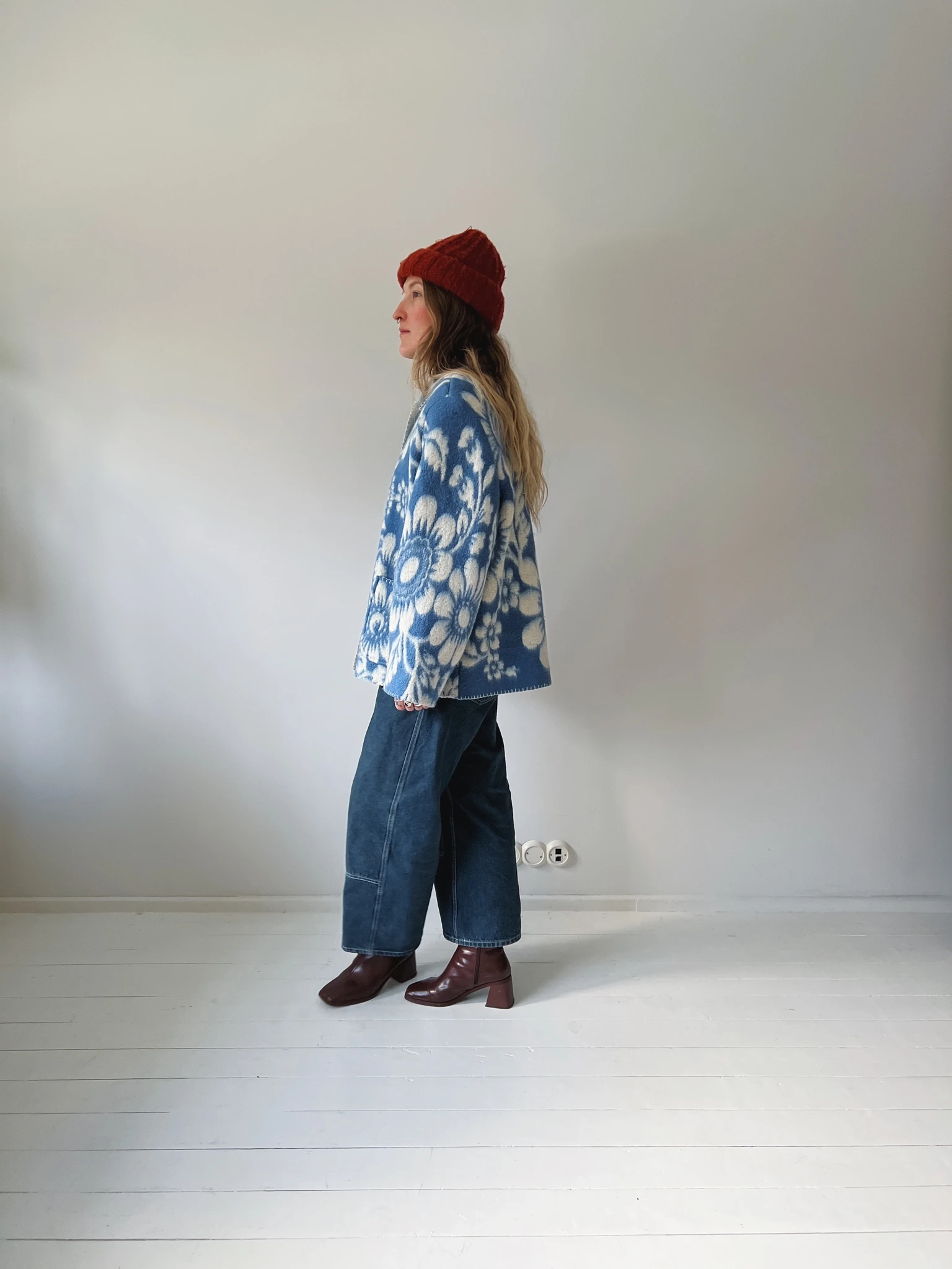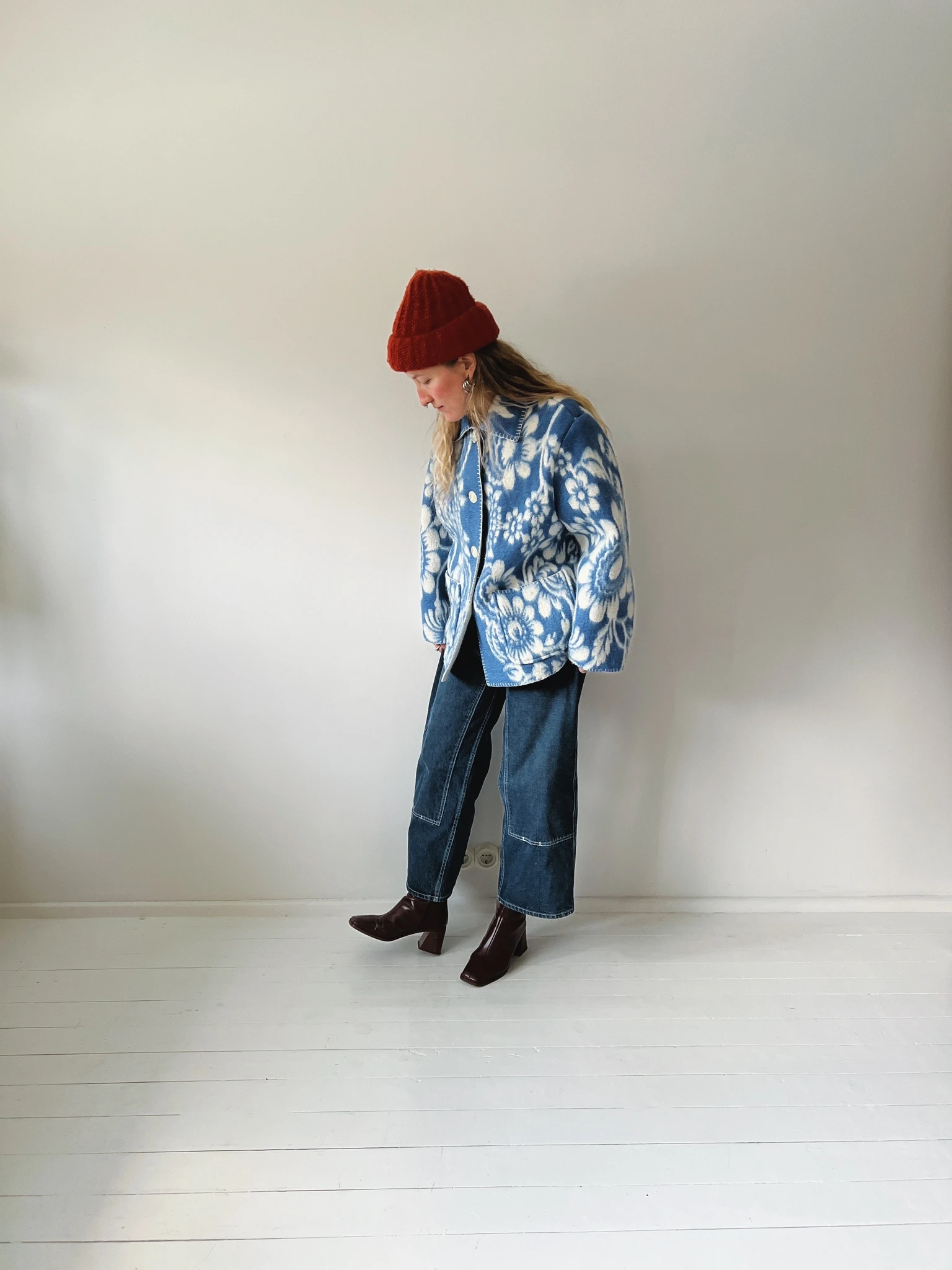 PEGGY is an unlined wool jacket that's made from a vintage wool blanket and is ideal to wear in the chillier months. We have kept the original hem and finish were possible and handstitched the rest with the utmost care.