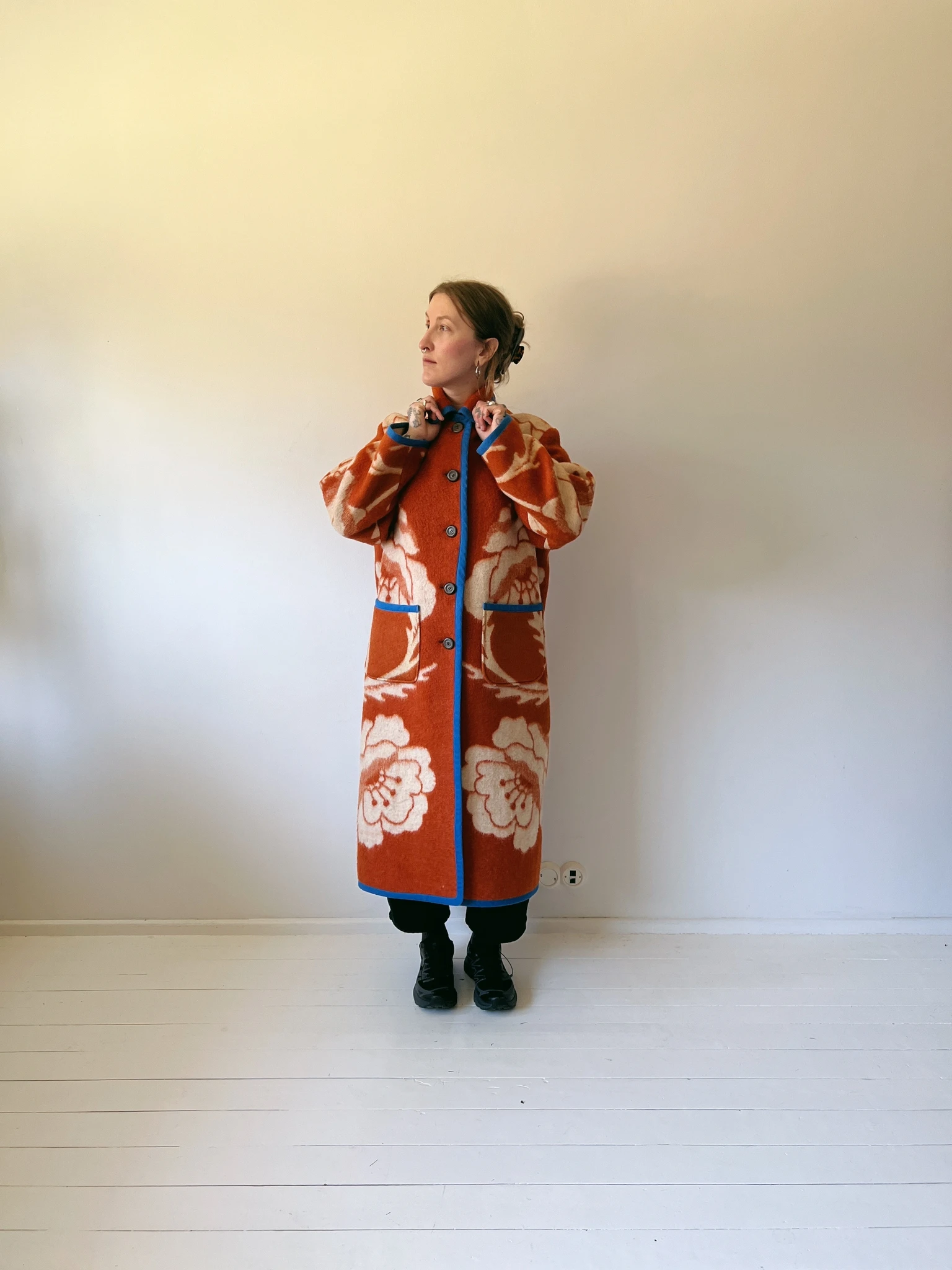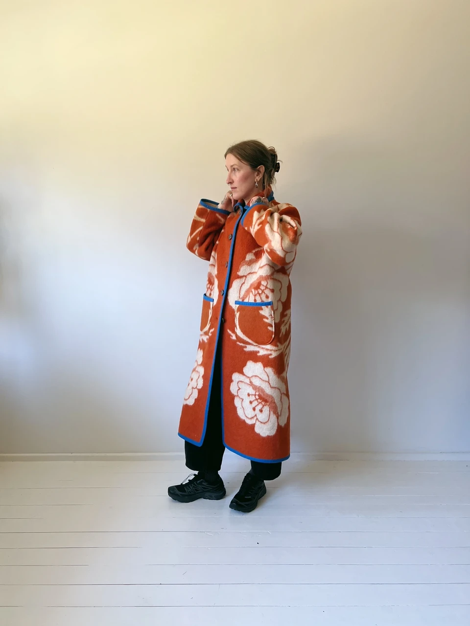 PEGGY on vintage tekist valmistatud ilma voodrita mantel. Kõik ääred oleme viimistlenud kandipaelaga.