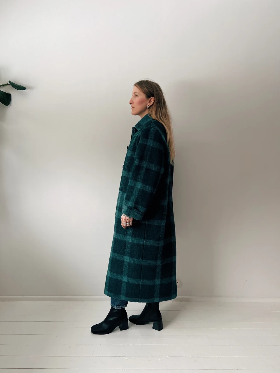 PEGGY tekist mantel (tume smaragdroheline ruuduline)