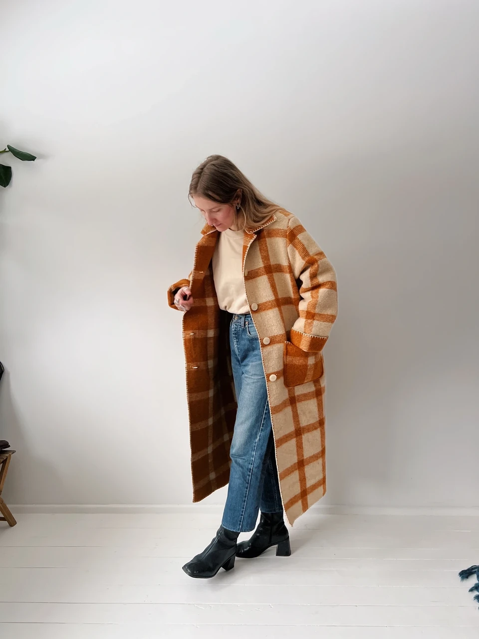 PEGGY on villasest tekist valmistatud eriti soe ilma voodrita mantel, mis on eelkõige mõeldud kandmiseks külmematel kuudel. Oleme säilitanud originaaläärestused kus võimalik ja hoolsate käsitsipistetega nõelunud muu.