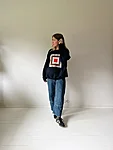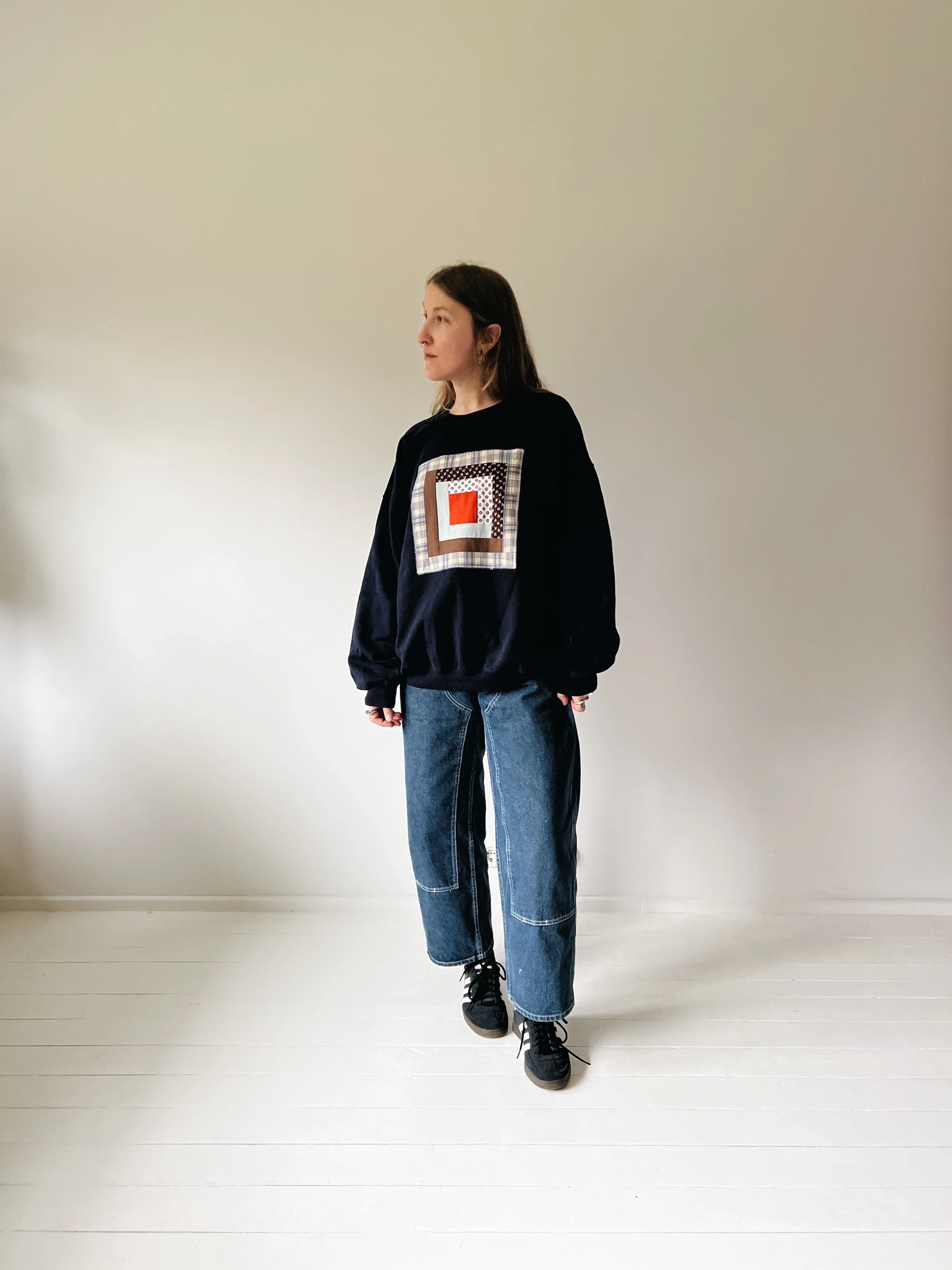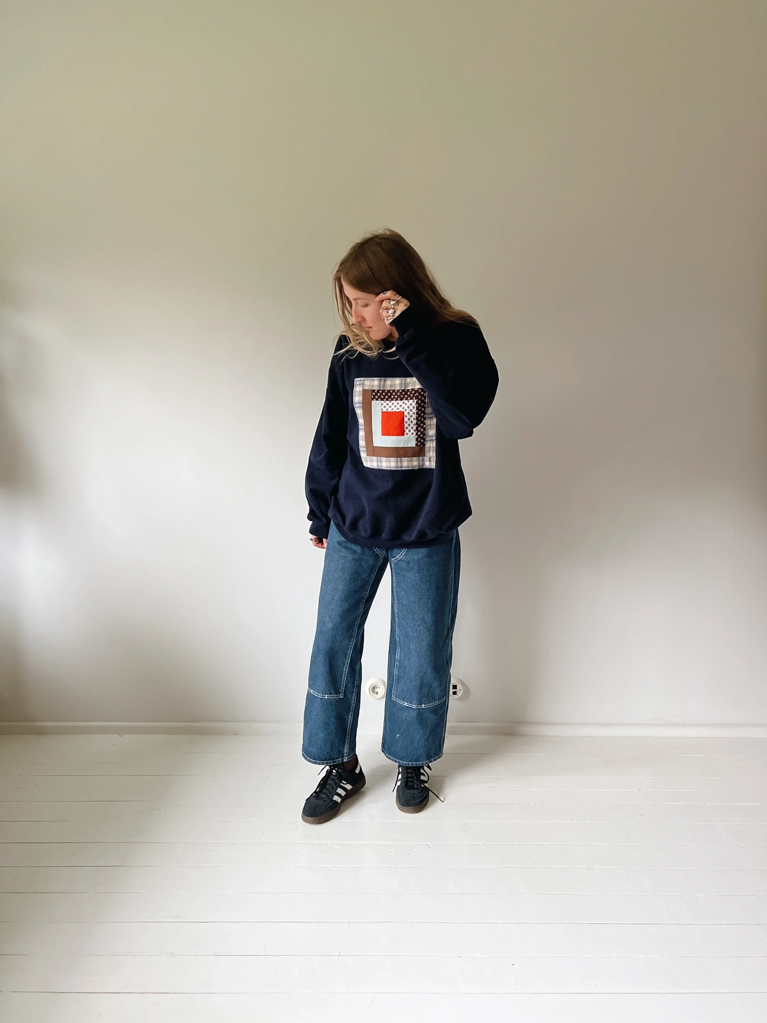Patchwork applique sweatshirt (dark blue log cabin XL)