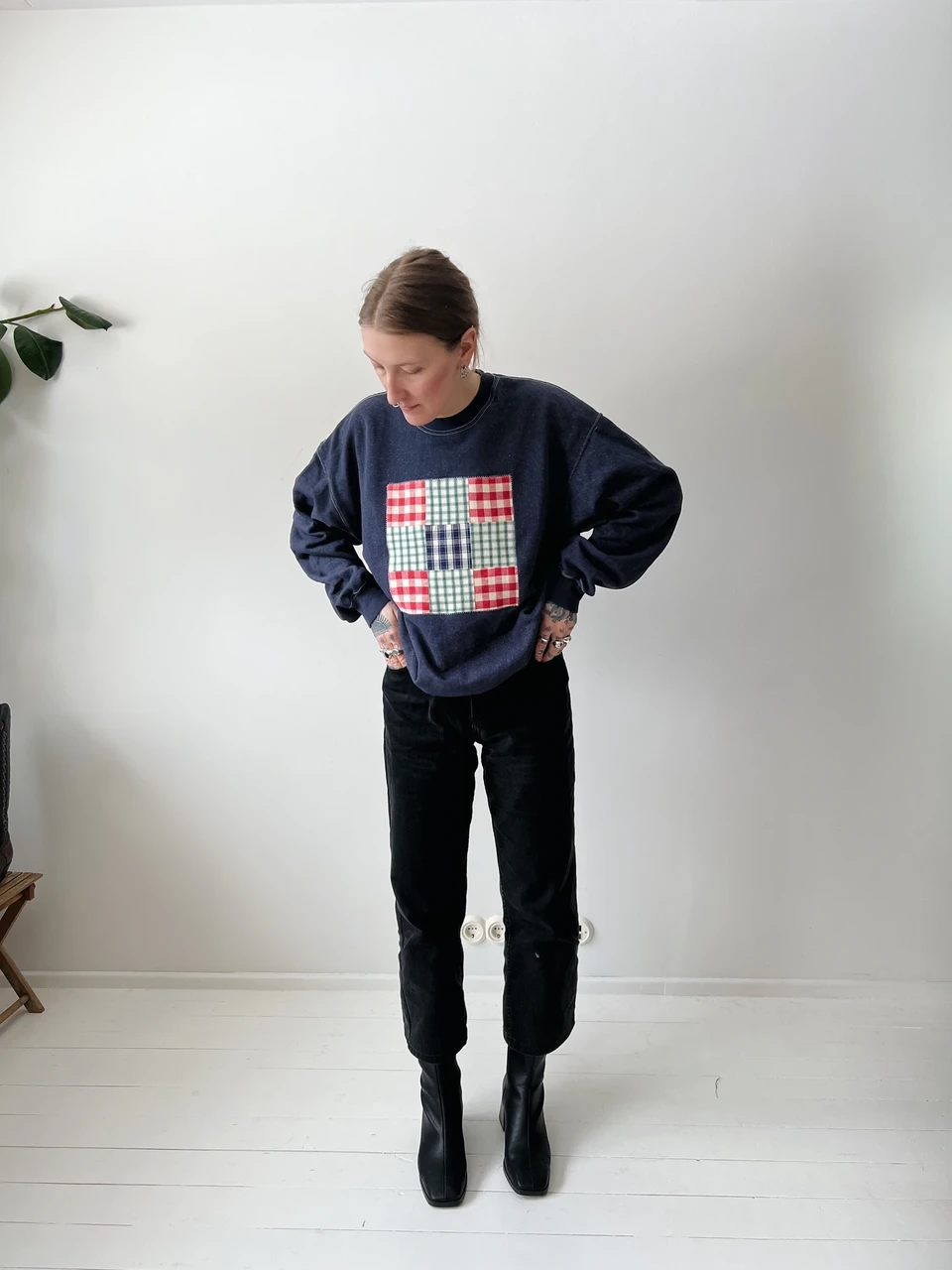 Vintage sweatshirt with a custom-made patchwork applique.
