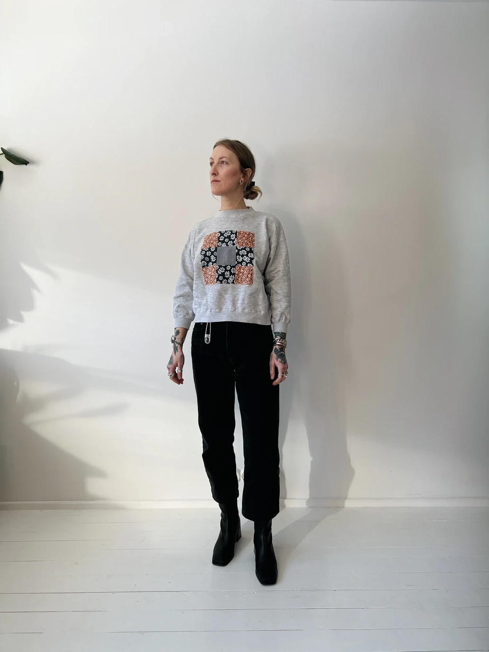 Vintage sweatshirt with a custom-made patchwork applique.