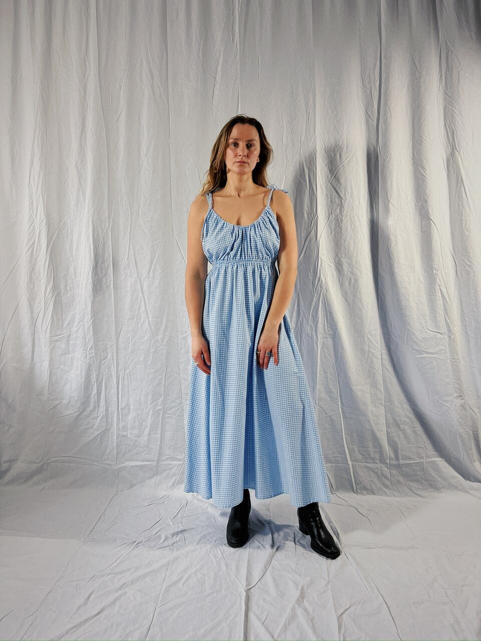 ALEXIS dress (blue gingham with shoulder ties)