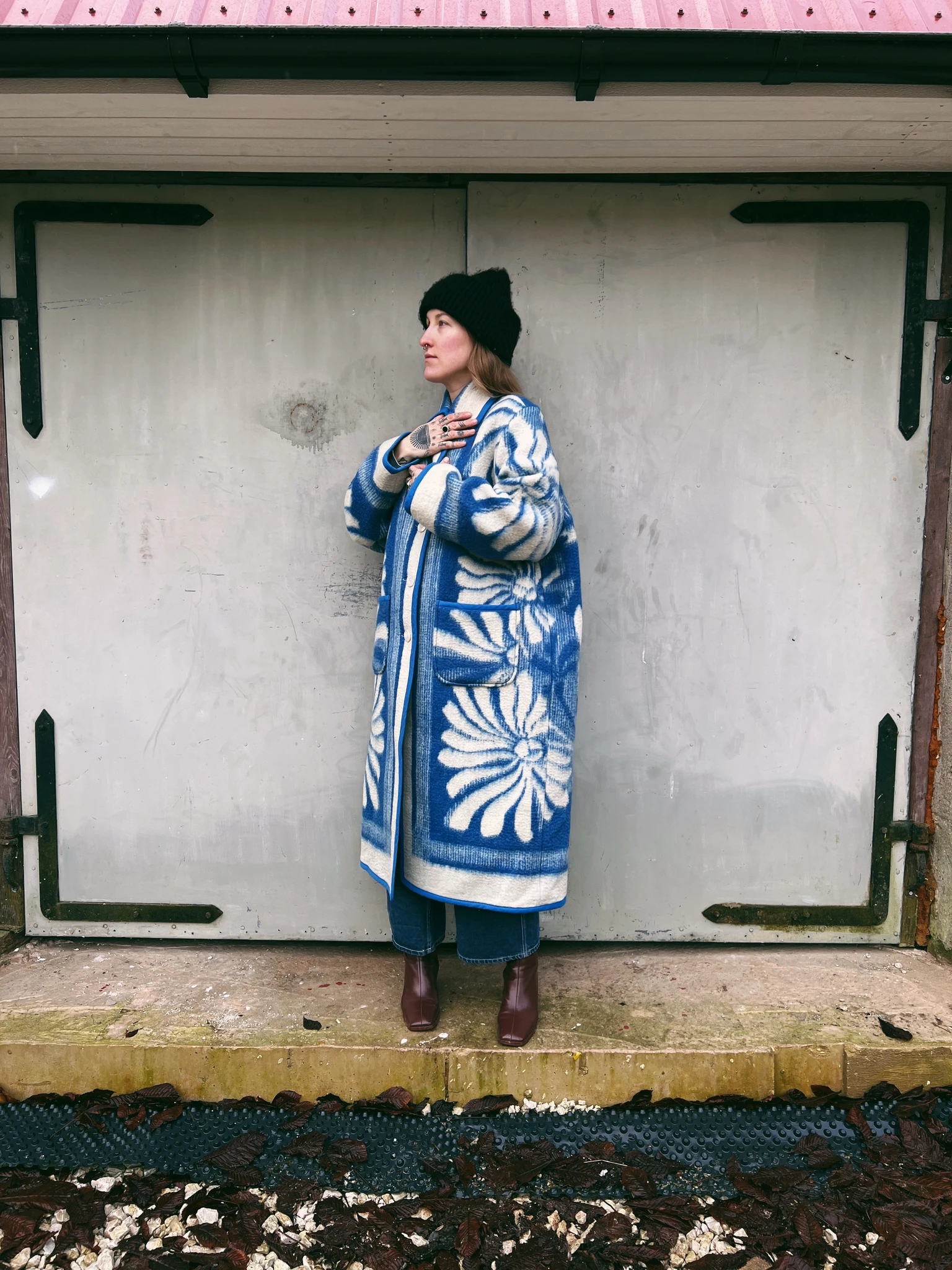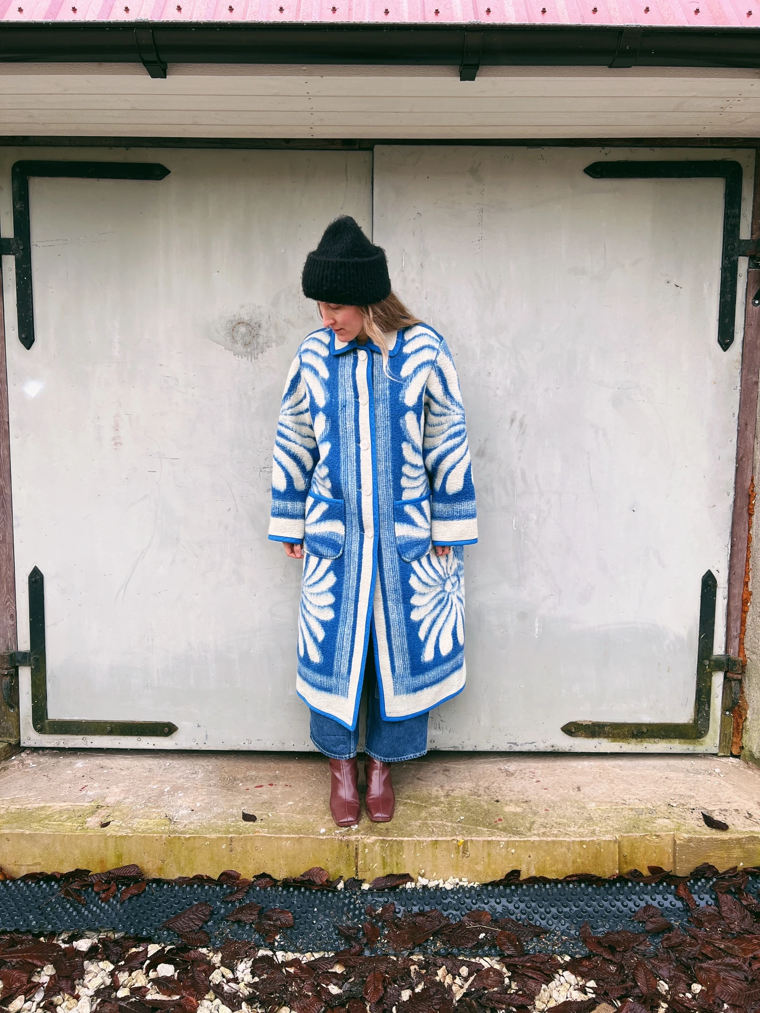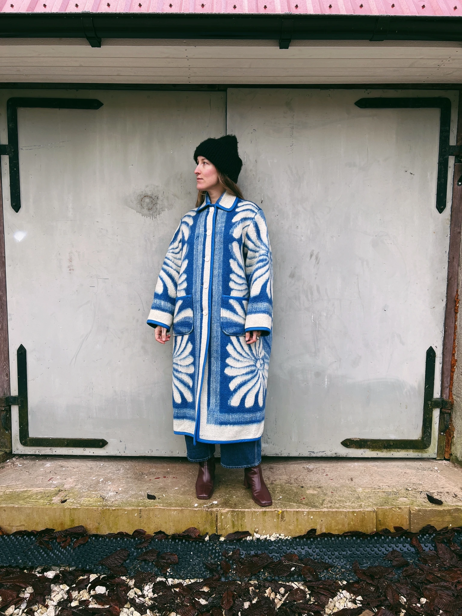 PEGGY is an unlined coat that's made from a vintage blanket and is ideal to wear in the chillier months. We have reinforced the edges with binding.