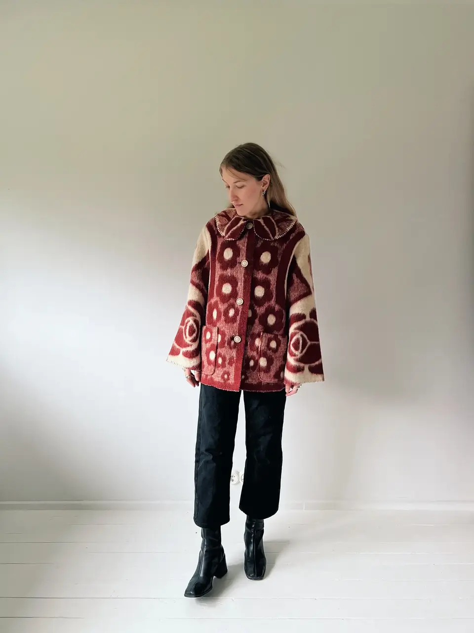 PEGGY is an extra warm unlined wool mix mid-length coat that's made from a vintage blanket and is ideal to wear in the colder months. We have kept the original hem and finish were possible and handstitched the rest with the utmost care.