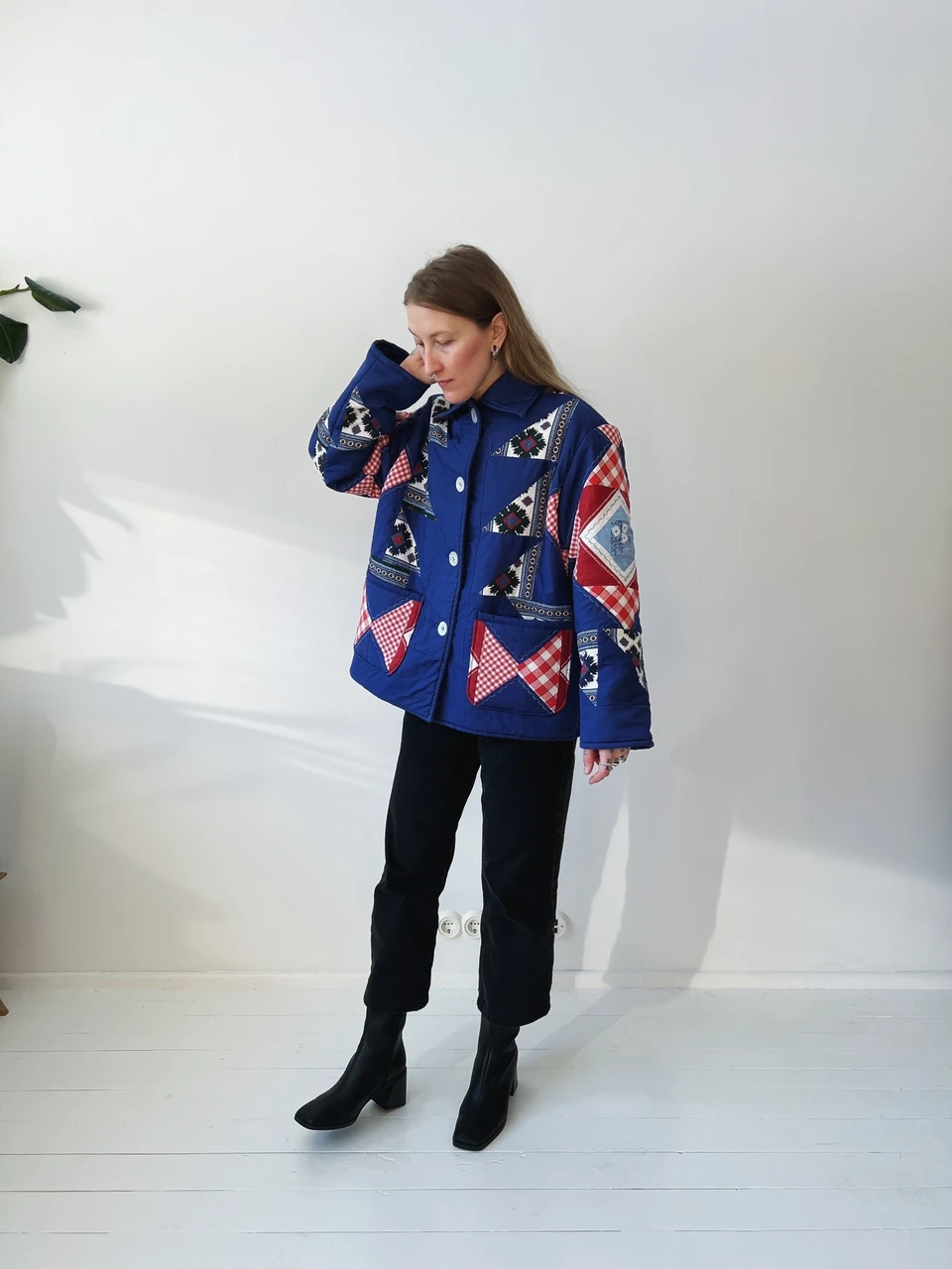 ZOE is a jacket made from a quilt blanket. It ise meant to have an oversized fit and dropped shoulder. The filling is a polyester batting and can thus be worn in the colder months.
