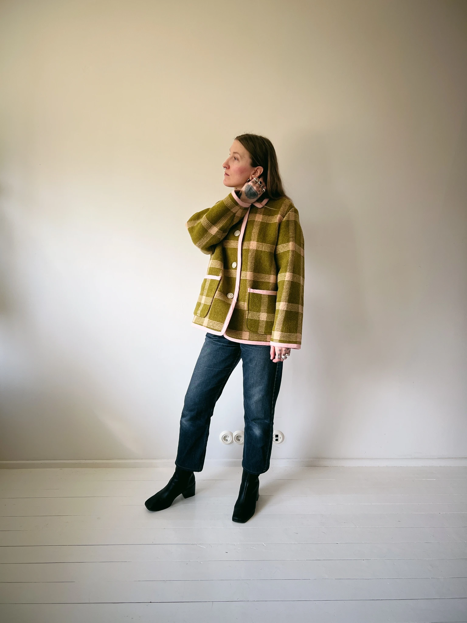 PEGGY tekist jakk (laimirohelise ja roosa ruuduline)