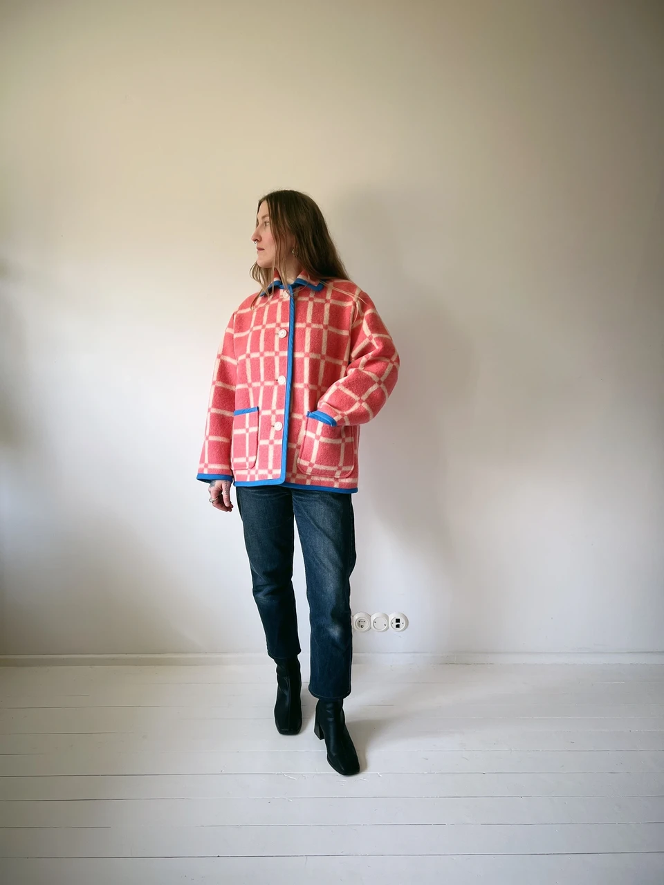 PEGGY on villasest tekist valmistatud soe ilma voodrita jakk, mis on eelkõige mõeldud kandmiseks jahedamal ajal. Kõik ääred oleme viimistlenud kandipaelaga.