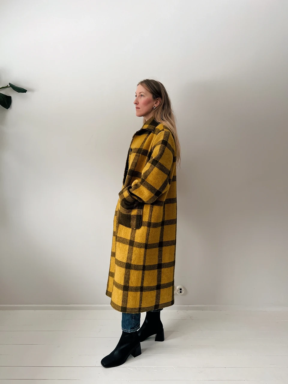 PEGGY tekist mantel (kollase-pruuniruuduline)