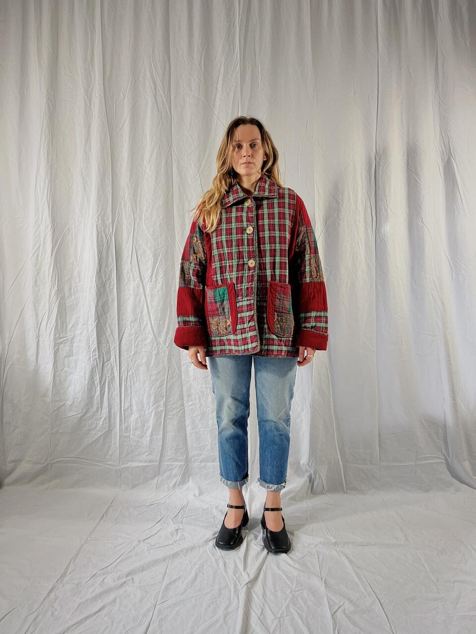 ZOE lapitekist jakk (punaseruuduline käänisega)