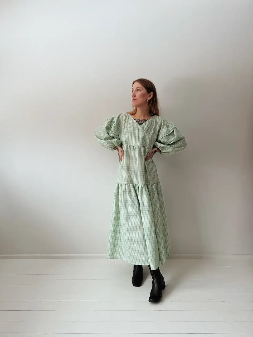 MONTANA kleit (valge-roheliseruuduline)