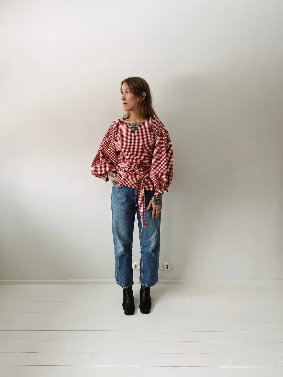 MARIE wrap pluus (punaseruuduline)
