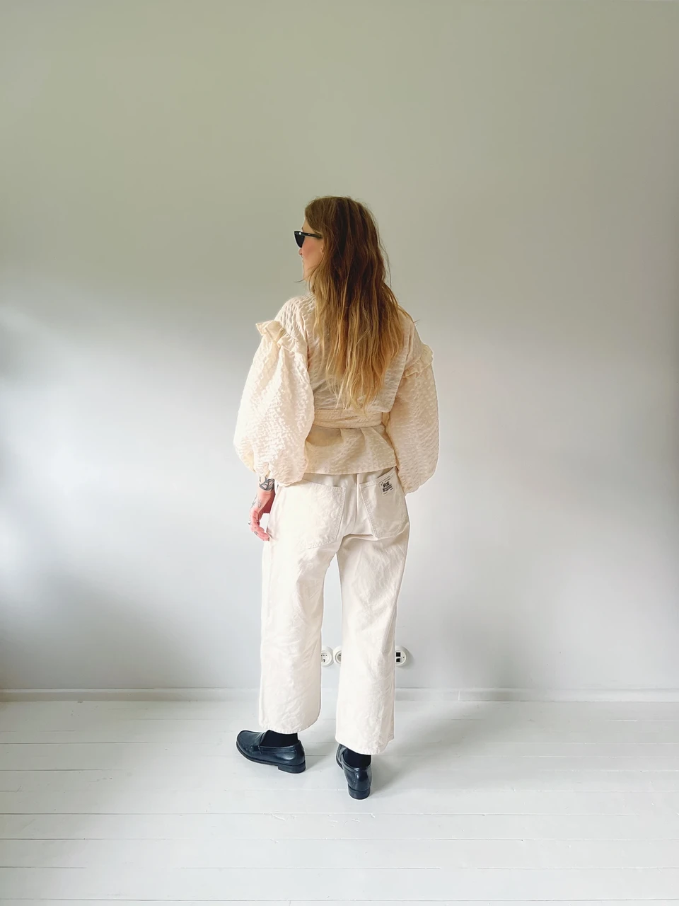 *Kasutame oma töös vaid taaskasutusest pärinevaid tekstiile, mistõttu võib meie lõpptoodetel esineda materjali loomulikust kasutamisest tulenevaid kulumisjälgi ning parandatud kohti. Peseme kõik materjalid enne kasutust hoolikalt läbi.