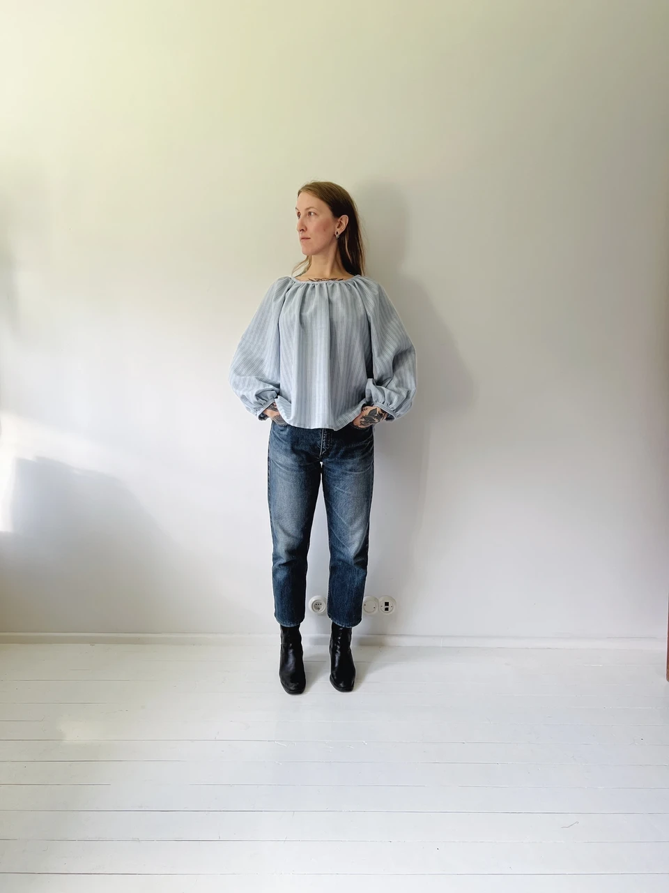 SALME raglaan pluus (helesinine triibuline)