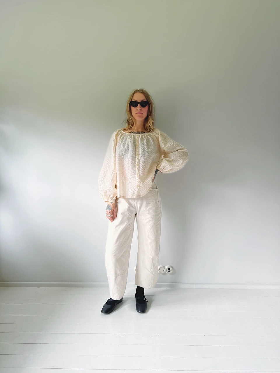 SALME on alt veidi laieneva raglaanvarrukaga pluus, mis sobib oma lihtsuselt ja mugavuselt täitmaks sinu garderoobis baaseseme funktsiooni. Ees on kaunistav nööbiliist.
