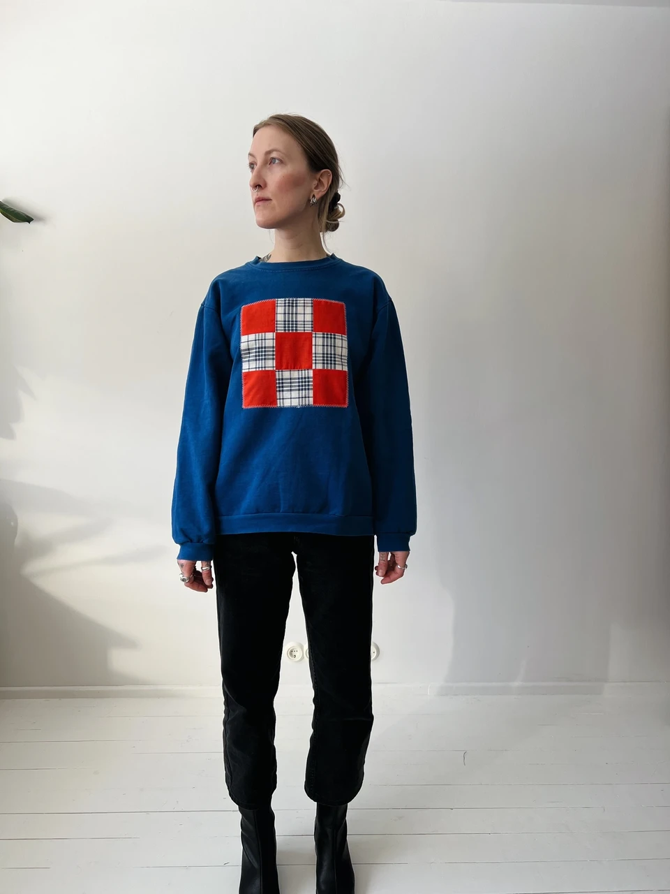 Vintage patchwork sweatshirt (cobalt blue, XL)